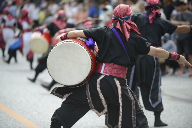 千葉県ではあまり見られないエイサーは人々を圧倒する勢いがあり、一度は見ていただきたい迫力ある演目です。